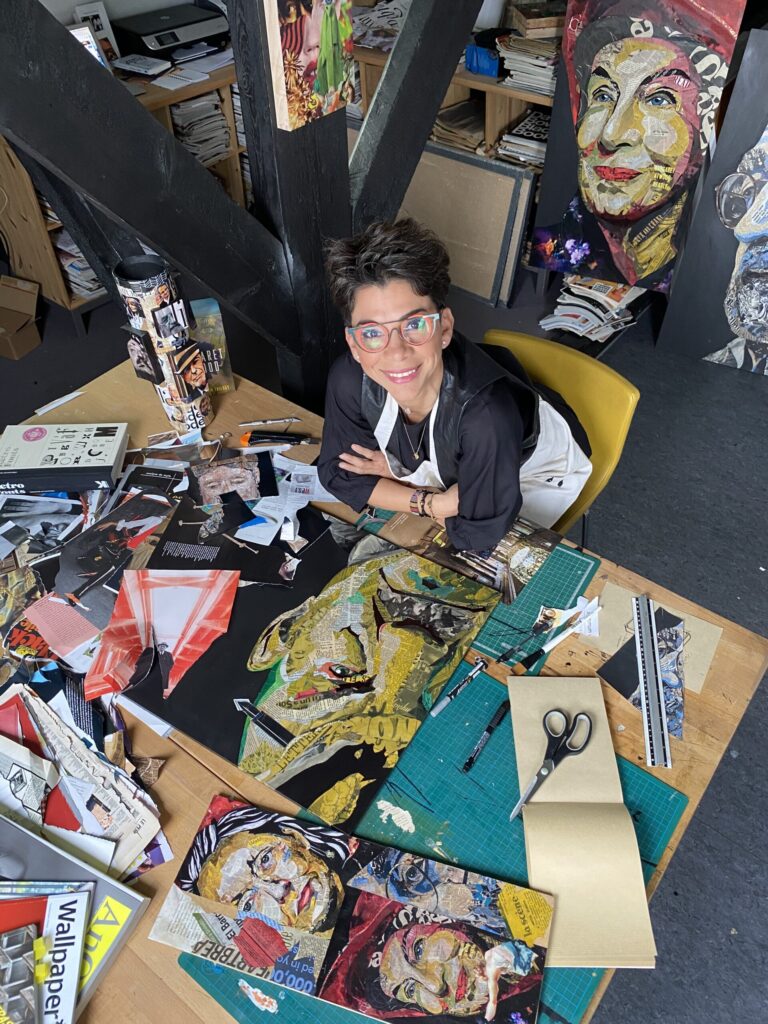 Todo esto la impulsó a tomar la decisión de presentarse en la escena internacional. Con una mezcla de determinación y valentía, alquiló un stand para exponer sus obras en la feria de arte contemporáneo de París, Su espacio era una explosión de color y memoria, en ella presentó una colección de retratos de iconos del rock de los años setenta, como David Bowie y Mick Jagger, utilizando originales de revistas y periódicos de la época en sus obras.